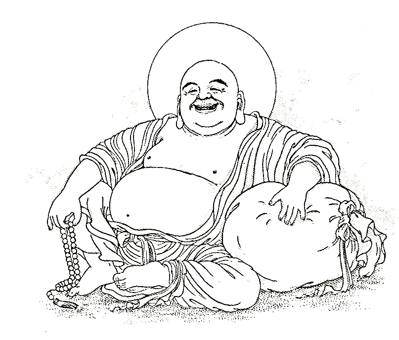 In China wurde der zukünftige Buddha die populäre und beliebte Gestalt des Mi-Le 弥勒 unverkennbar mit seinem dicken Bauch, fröhlichen Lachen und geschulterten Stoffsack: