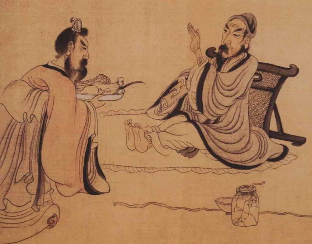Meister Ziqi saß an seinem Tisch, blickte zum Himmel auf und atmete lang aus. Er wirkte abwesend, als hätte ihn sein Geist verlassen. Der Schüler Ziyou, der dienend vor ihm stand, sprach: „Was geht hier vor? Kann man denn den Leib wie dürres Holz erstarren und den Geist wie tote Asche erlöschen lassen? Ihr seid so anders als sonst, wenn Ihr an dem Tisch sitzt.“