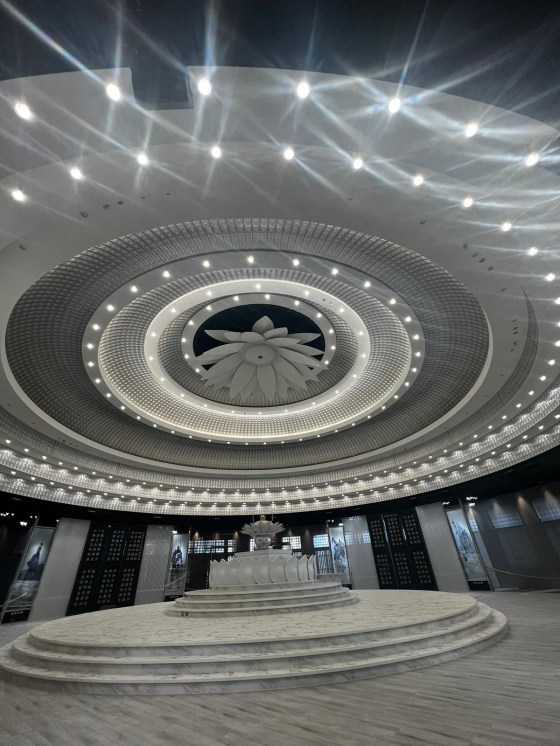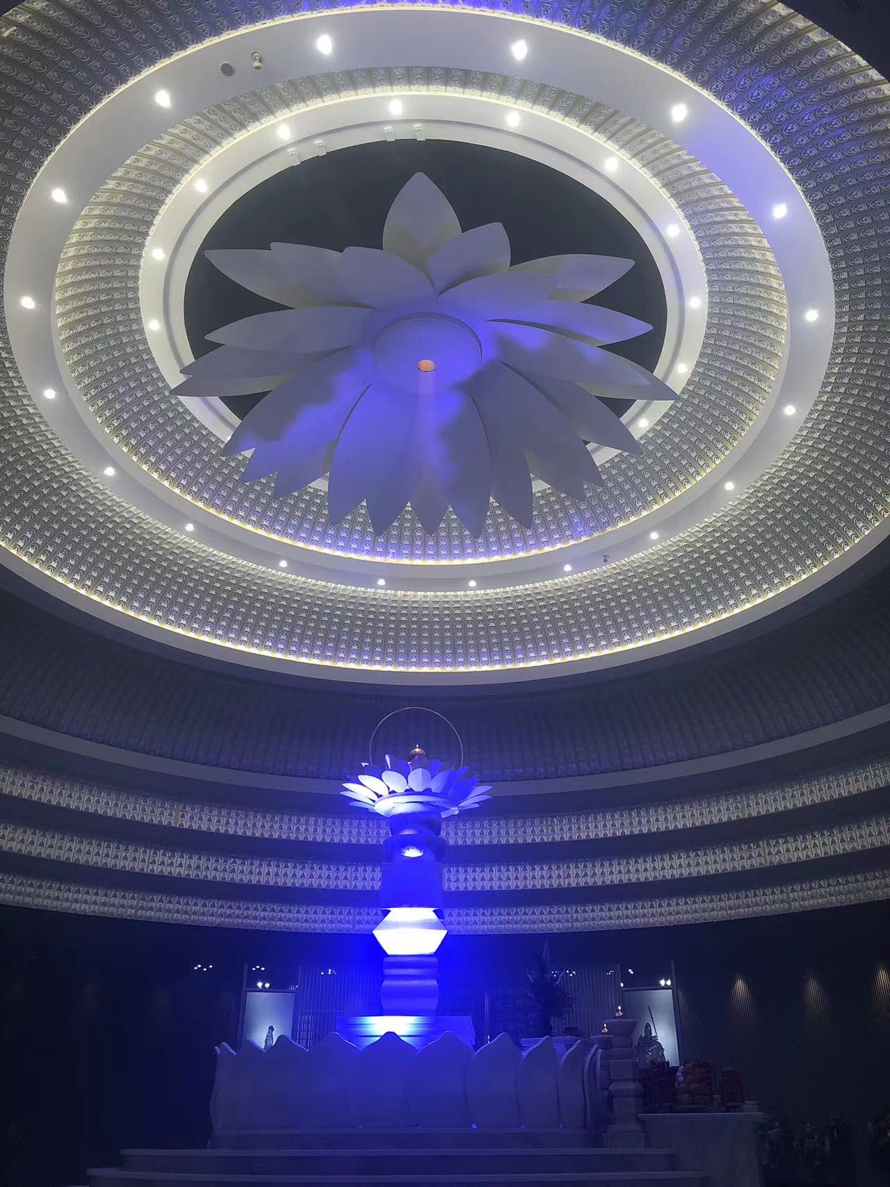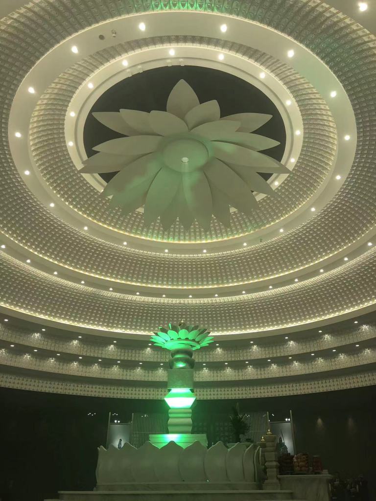 Im Gegensatz zu den herkömmlichen buddhistischen und daoistischen Klöstern sowie den anderen Tempeln des Weges der Einheit ist dies eine runde Tempelhalle, in der sich der Schrein in der Mitte befindet. Ebenso unkonventionell für die chinesische Tradition ist sie vorwiegend in weiß gehalten. Die Lichter an der runden Decke werden als Mi-Le-Ci-Kuang 彌勒慈光 bezeichnet, wörtlich das gütige Licht des Maitreya. Auf jedem dieser Lichtfelder ist eine Maitreya-Figur zu sehen. Darunter befindet sich eine Nummer und gegebenenfalls der Name eines Spenders. Insgesamt gibt es 10.800 solcher Maitreya-Lichter: