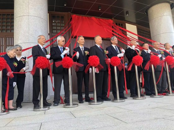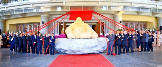 Das Namensschild, auf dem die persönliche Kalligraphie des Obermeisters Hsieh eingraviert ist, wurde bis zum 10.12. von einem roten Tuch verhüllt. Am 10.12. wurde es von den leitenden Meistern zusammen mit den Ehrengästen feierlich zur Eröffnung des Festes enthüllt: