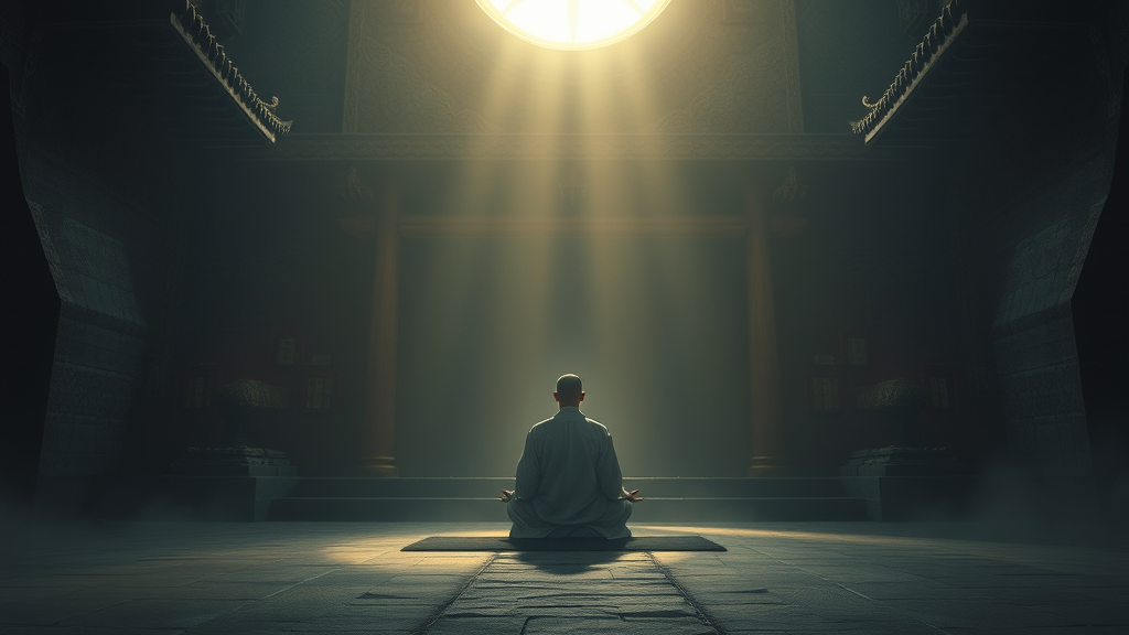 Jahre später, nach Verbüßung seiner Strafe, verspürte er eine tiefe Sehnsucht, die ihn zurück zum Kloster führte. Mit zitternden Händen öffnete er die Tür, kniete sich vor dem Zen-Meister nieder und sprach mit gebrochener Stimme: „Bitte, nimm mich als deinen Schüler auf. Ich habe die Ruhe und Weisheit, die du gezeigt hast, nicht vergessen.“