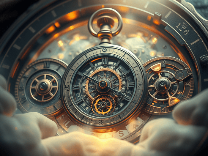Ein neu fertiggestelltes Uhrwerk kam zu zwei alten, die im Sekundentakt rhythmisch tickten.