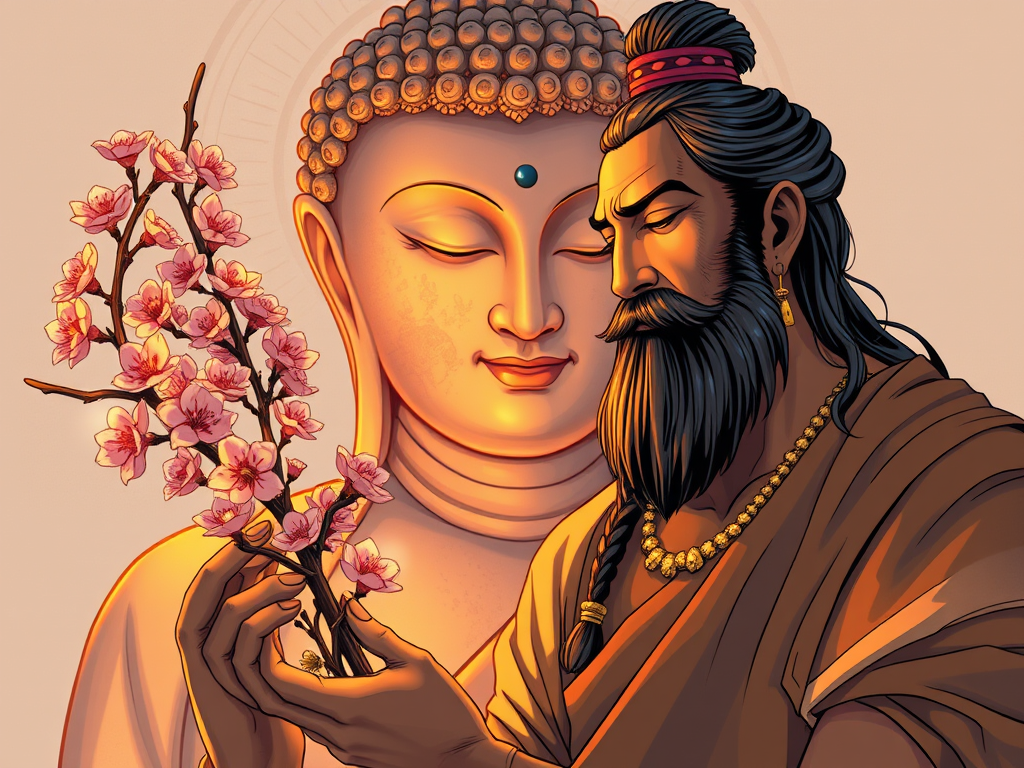 Der Erhabene Buddha wurde von einem Brahmanen mit Blumen geehrt. In seinen beiden Händen trug er zwei blühende Zweige, um sie dem Buddha darzubringen.
